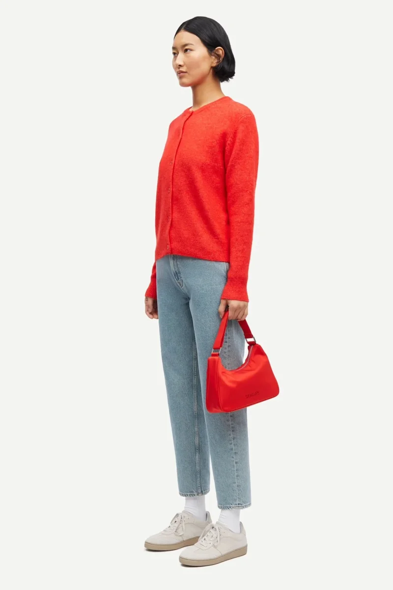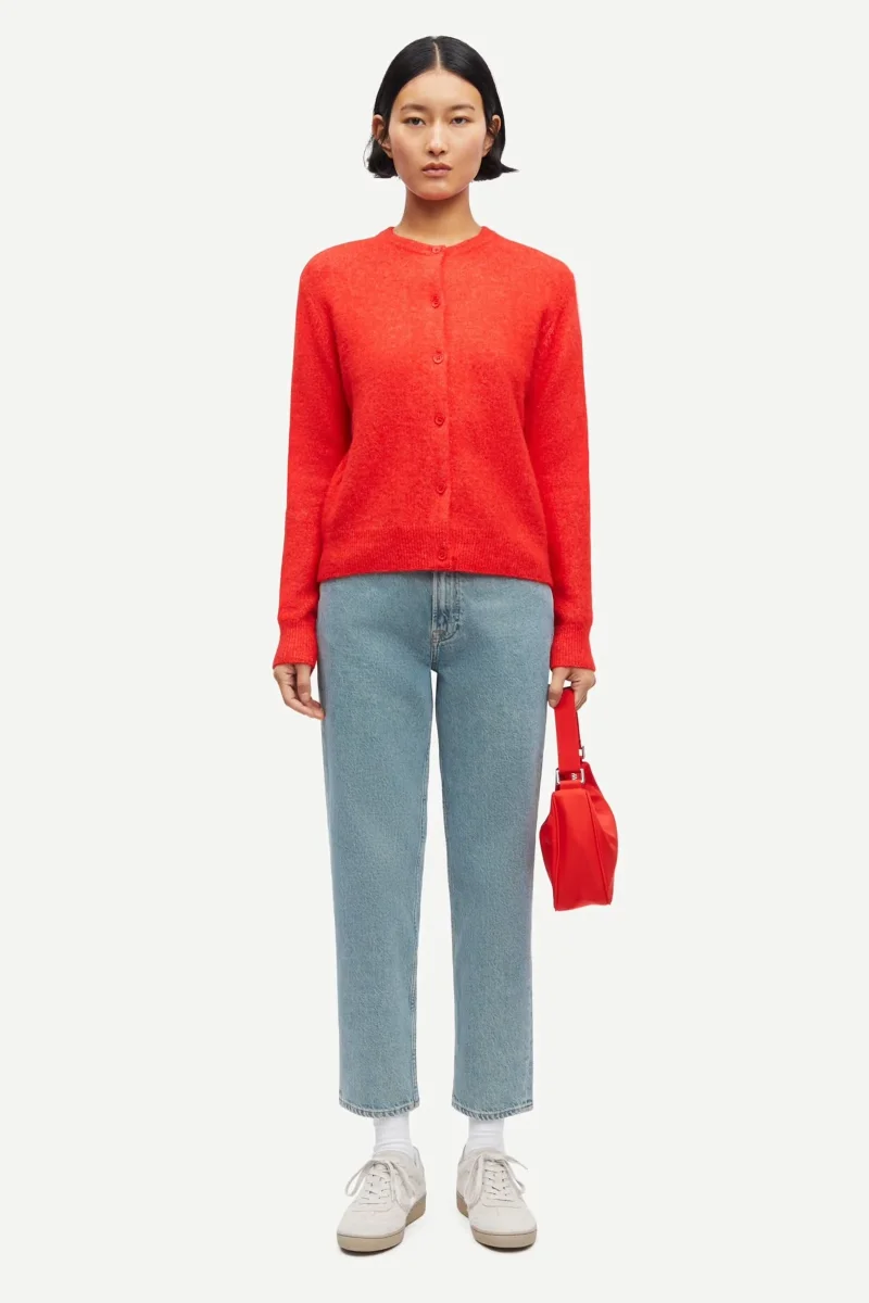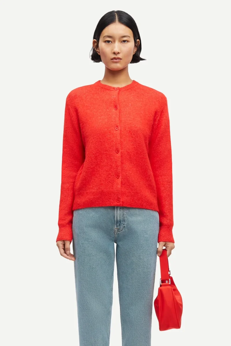Cardigan with a regular fit and cropped silhouette. Button closure on the front. Rib-knitted collar, cuffs, and hem. Main material made from an elastic blend with wool and alpaca wool. This product is RWS certified. RWS ensures that animal welfare and land management requirements are met, from farm to final product.