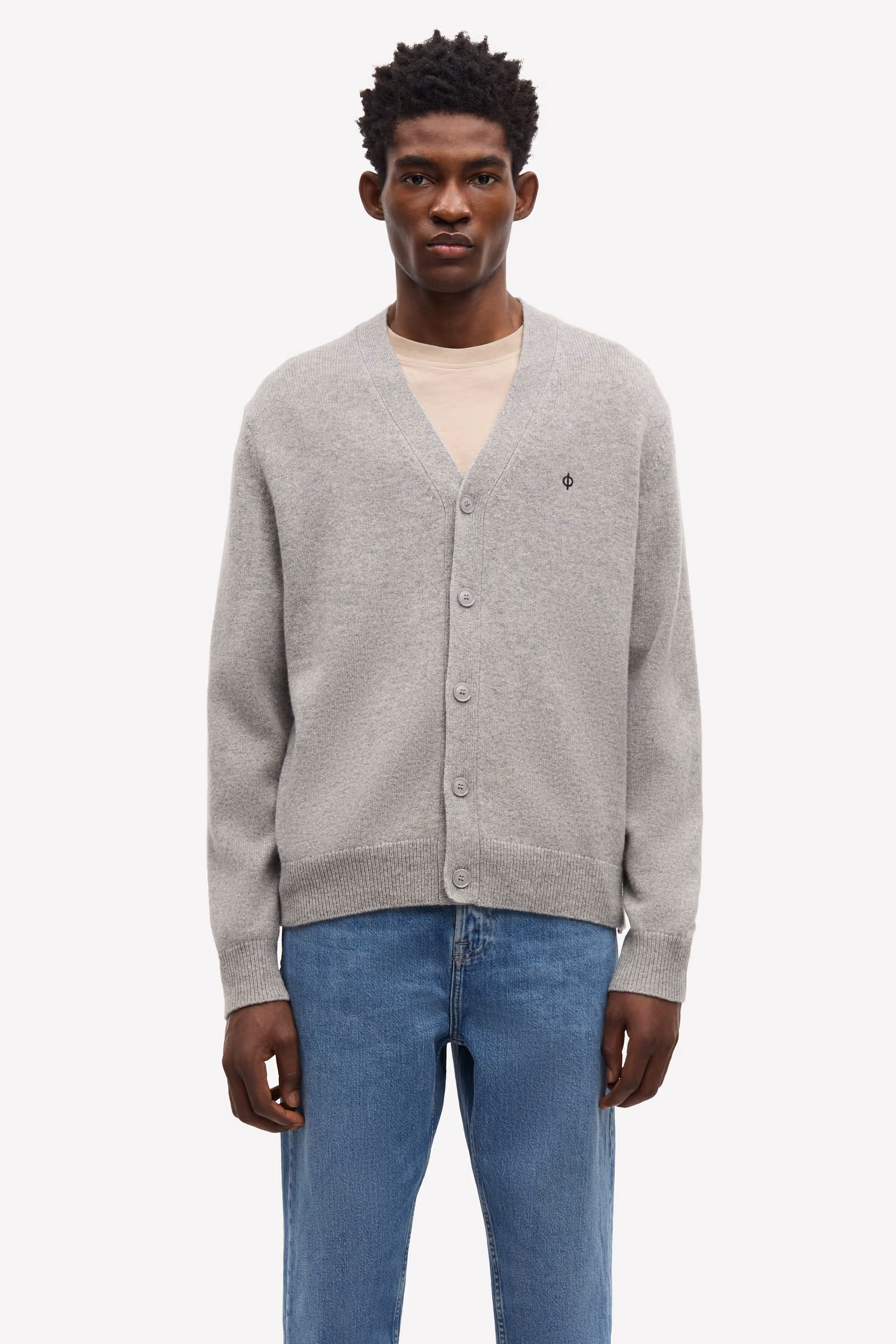 Cardigan with a regular fit. Rib-knitted cuffs and hem. V-neck. Embroidered ø-branding at the chest. Main material made from a wool blend.