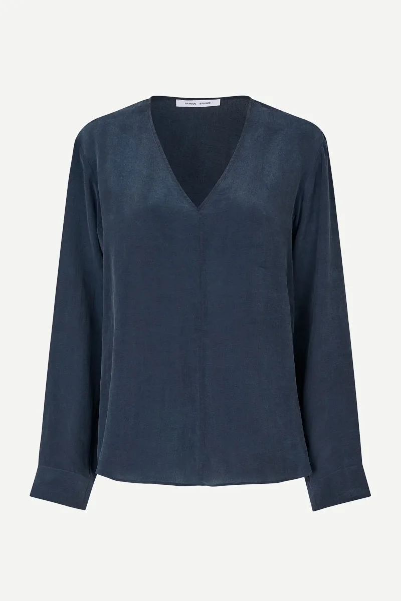 Long-sleeved top with a loose fit. V-neck. Main material made from [desirable 100% TENCEL™ Lyocell. This product contains TENCEL™ Lyocell, certified with the EU Ecolabel for textile products (licence no. AT/016/001) for environmental excellence.