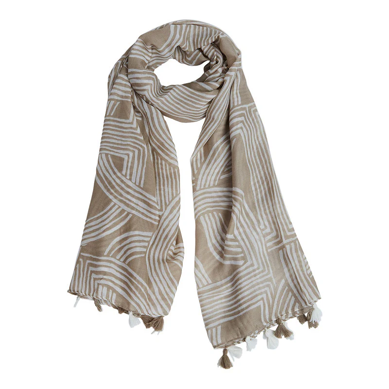 Scarf som har beige botten med vita ränder.