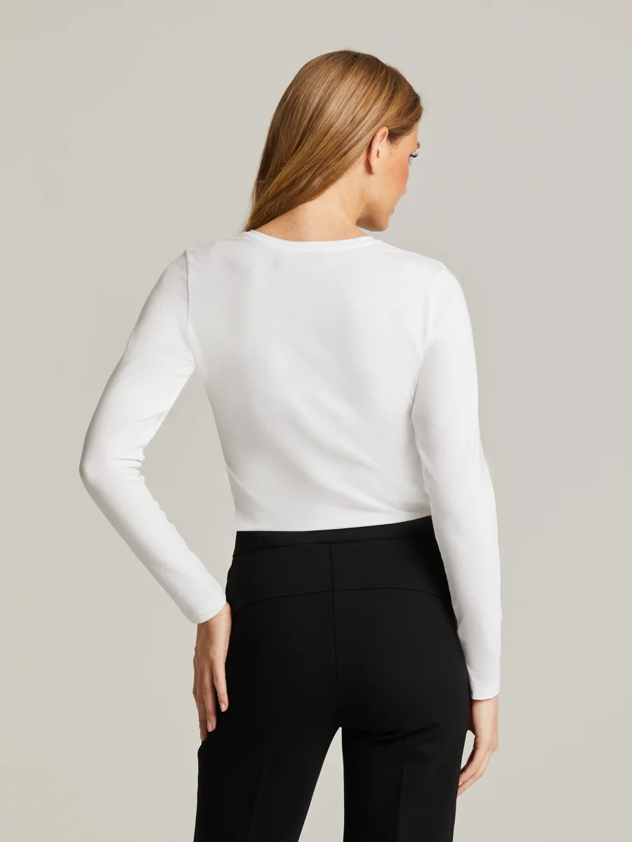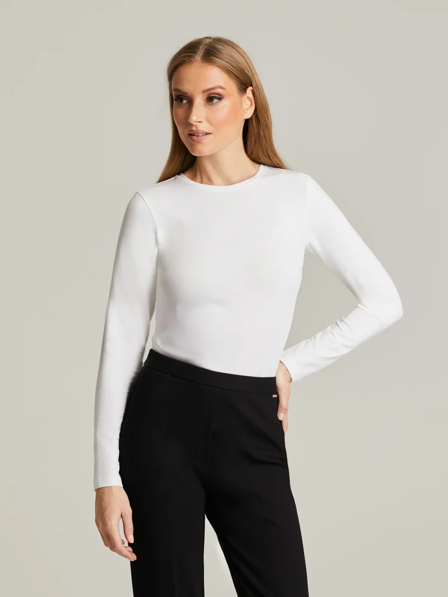 Klassisk långärmad jerseytopp med rund hals och lätt stretchig passform. Tillverkad av mjuk och smidig ekologisk bomullsblandning av hög kvalitet.