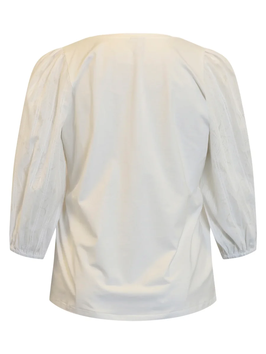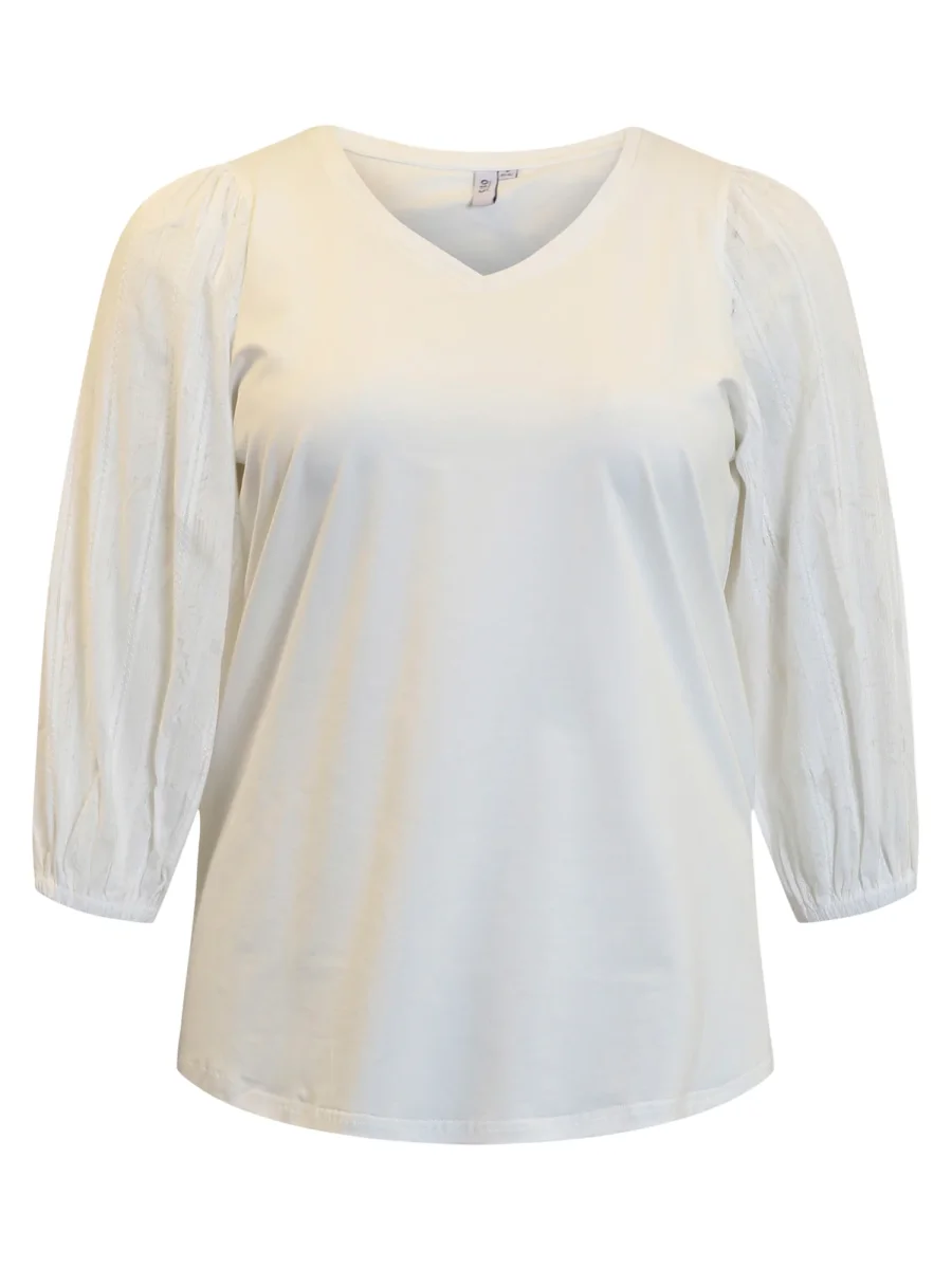 Skön vardagstopp med trikå och vackra puffärmar, det är v-ringad hals och en A-formad modell. Ärmarna är i 100% stum bomull men med en lös passform.