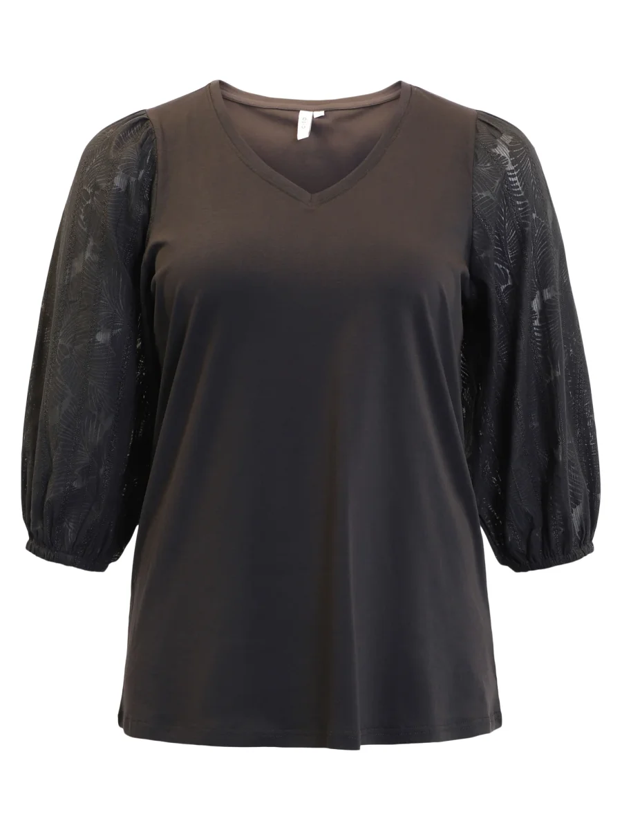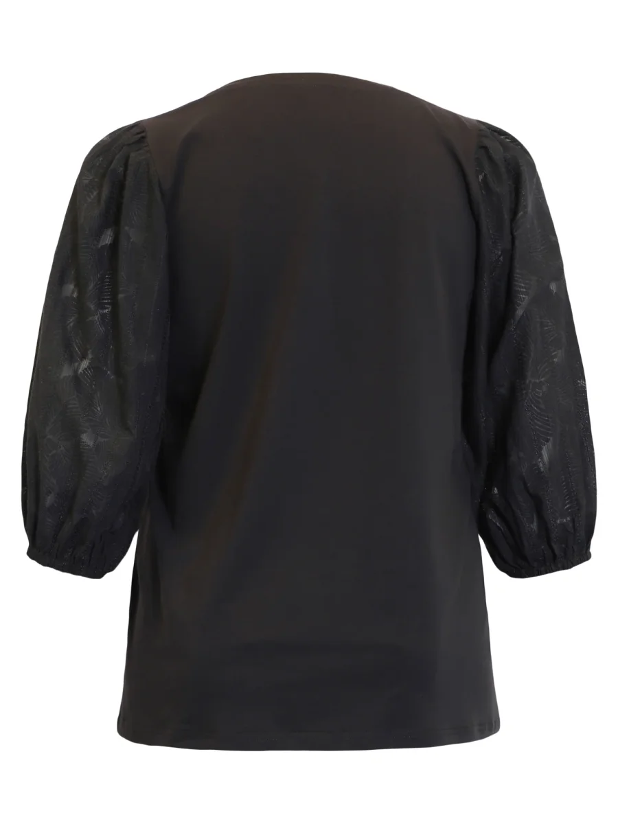 Skön vardagstopp med trikå och vackra puffärmar, det är v-ringad hals och en A-formad modell. Ärmarna är i 100% stum bomull men med en lös passform. Normal i storleken.Material: 50% viskos & 50% polyester.Ärmar: 95% bomull & 5% elastan,