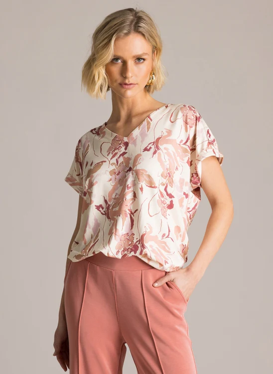 En storsäljare är tillbaka, denna sköna topp i mjuk viskos med kortärm och vingad hals med resår avslut.