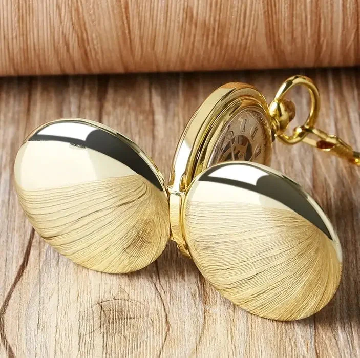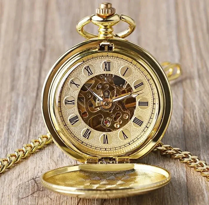 Det här vackra fickuret kommer att passa bra in i din klocksamling. Fickuret är guldfärgat och har ett dubbelt lock. Den romerska urtavlan och det synliga urverket ger klockan den perfekta vintage-looken!