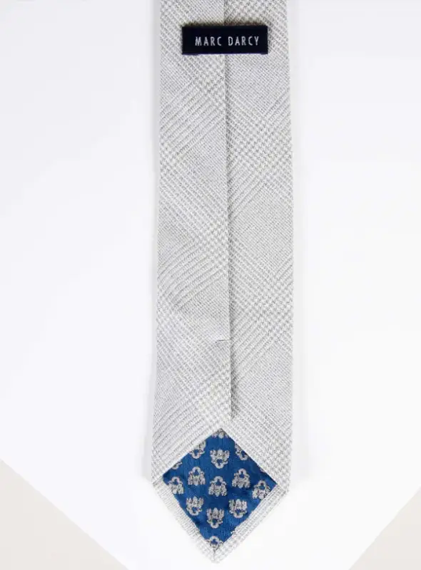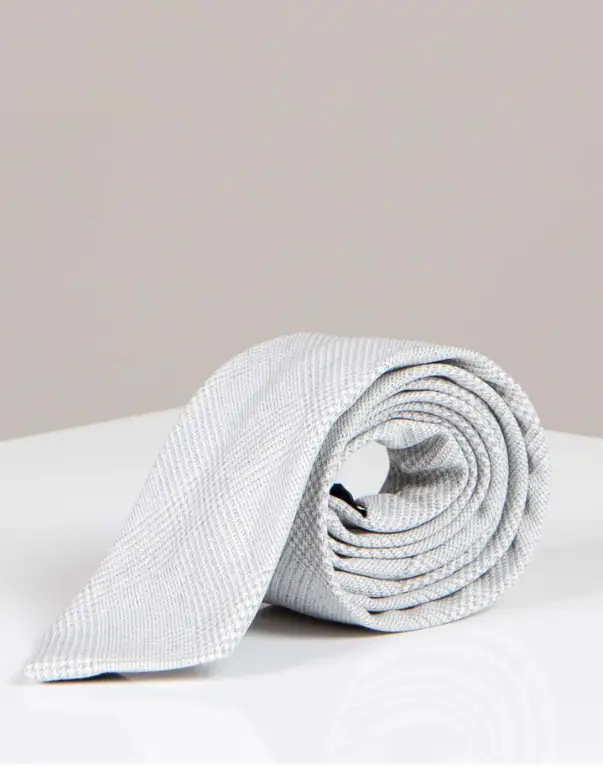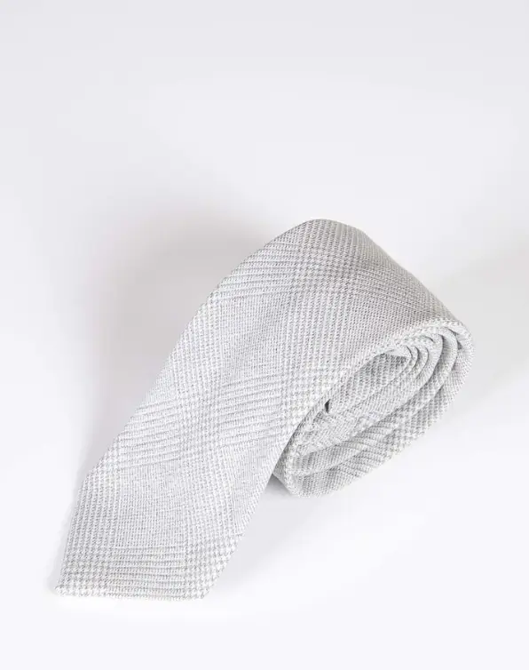 Den ljusa white stone-färgen passar lätt till olika tillfällen, oavsett om det är formella affärsmöten, bröllop, galor eller andra speciella evenemang. Slipsen har ett lätt rutigt mönster, precis som kostymen, och finns i flera färger.