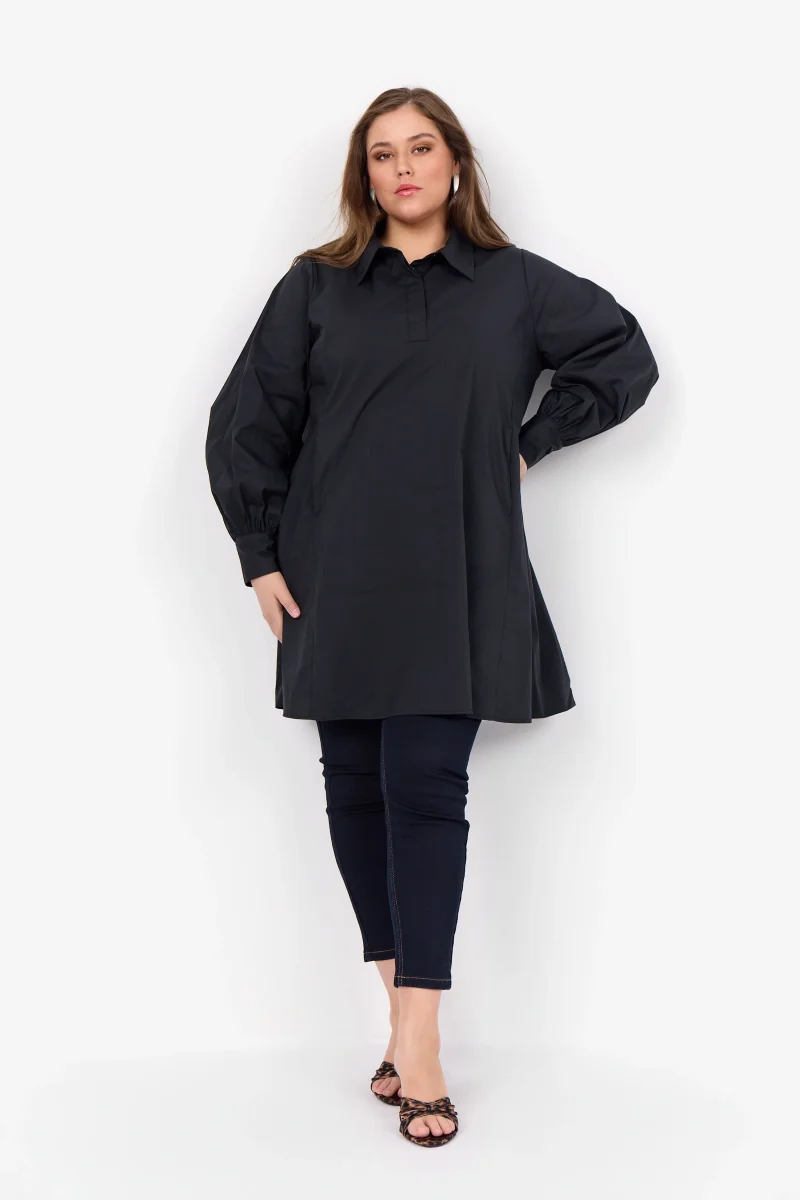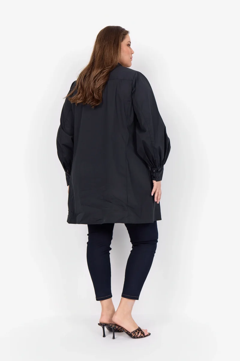 En svart A-formad skjorta med klassisk skjortkrage & långa ärmar, denna kan du både bära till byxor eller leggings.