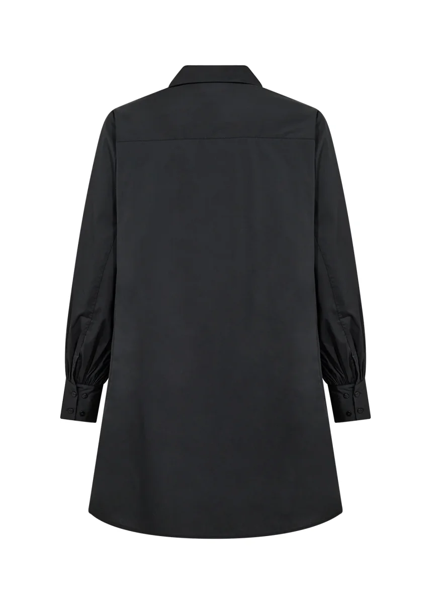En svart A-formad skjorta med klassisk skjortkrage & långa ärmar, denna kan du både bära till byxor eller leggings.Det är fickor på sidorna. Normal i storleken.Material: 68% Bomull, 27% Polyamid, 5% Elastan