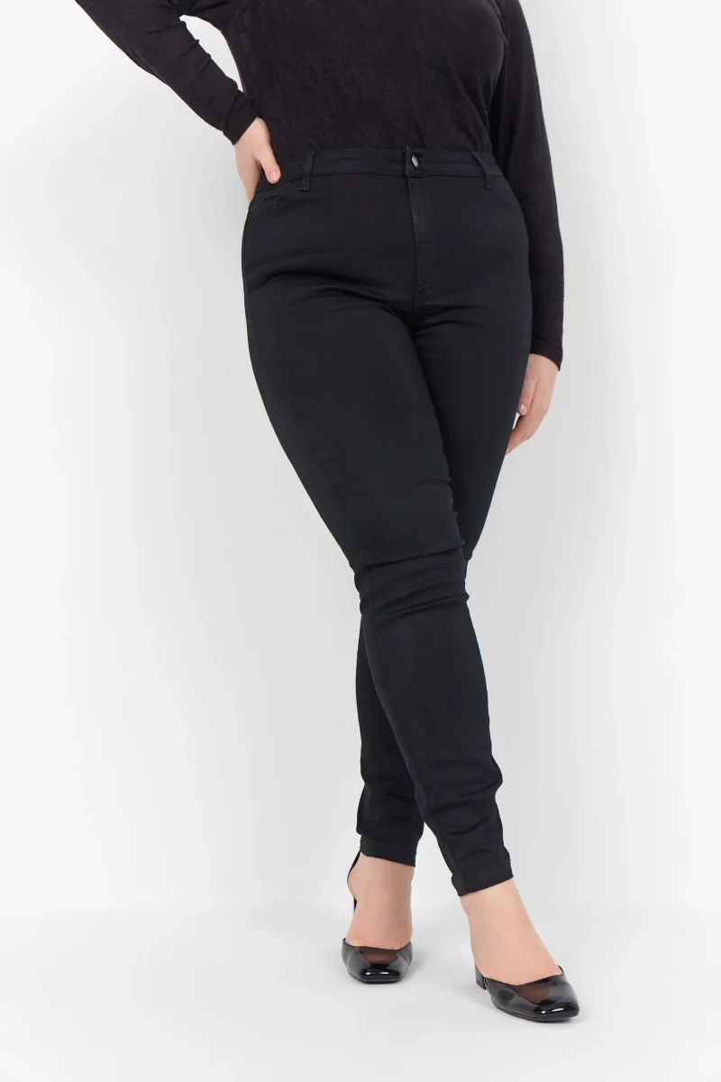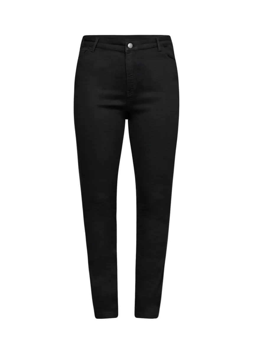 Ett par klassiska svarta jeans med smala ben, det är hög midja med knäppning & gylf framtill & hällor så du kan ha bälte.