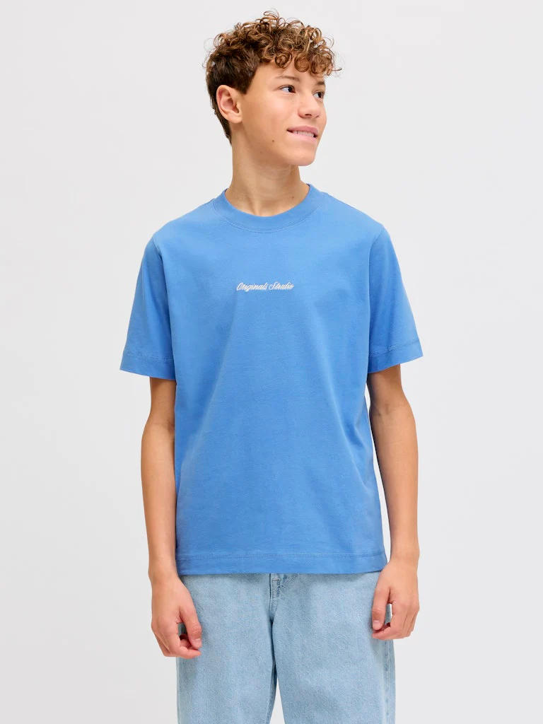 En stilren t-shirt från Jack & Jones Junior med rund hals och liten broderad logga på bröstet. Tillverkad i mjuk bomull som är skön mot huden och lätt att bära varje dag. En tidlös baströja som funkar till allt – från jeans till shorts.