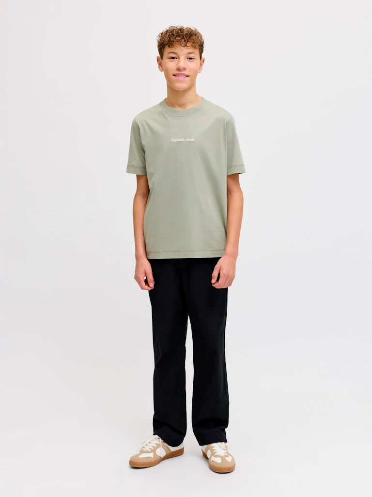En stilren t-shirt från Jack & Jones Junior med rund hals och liten broderad logga på bröstet. Tillverkad i mjuk bomull som är skön mot huden och lätt att bära varje dag. En tidlös baströja som funkar till allt – från jeans till shorts.