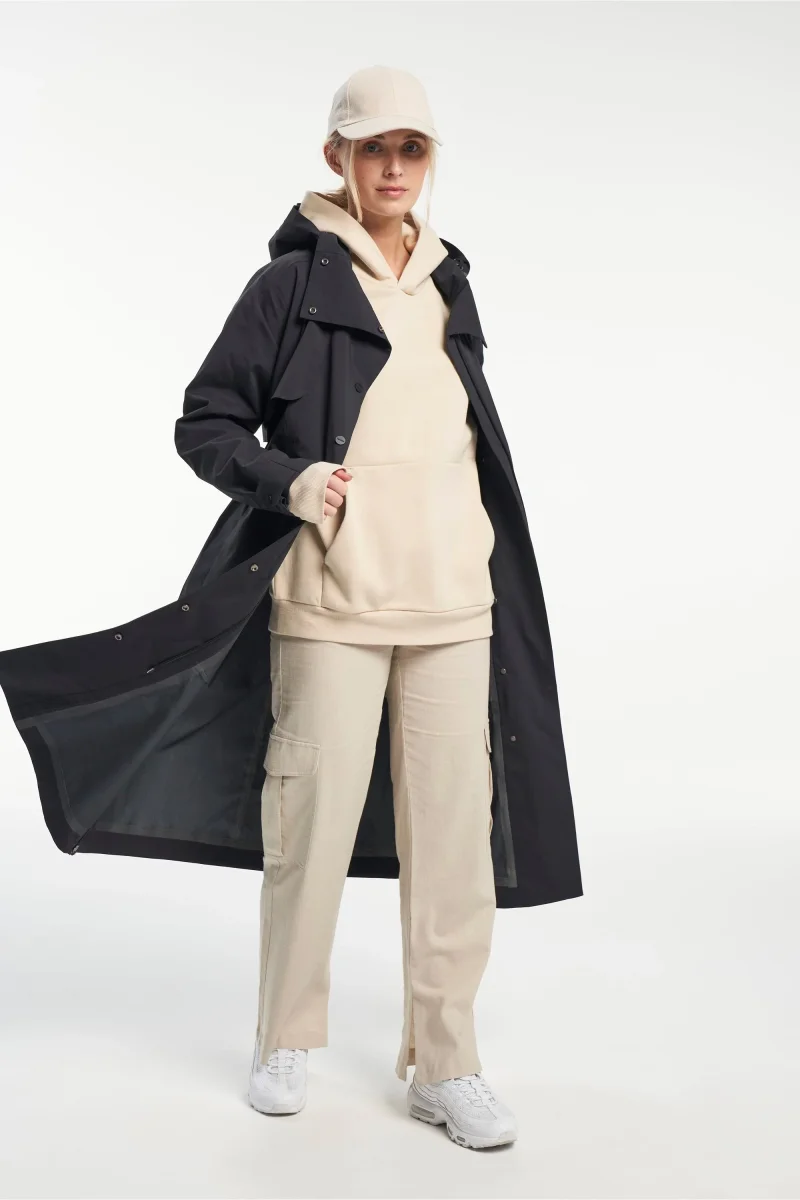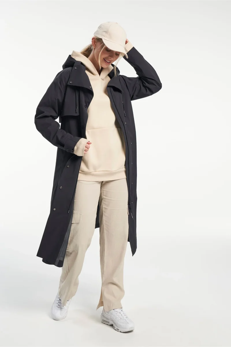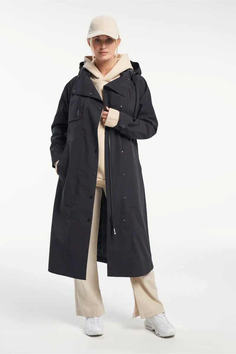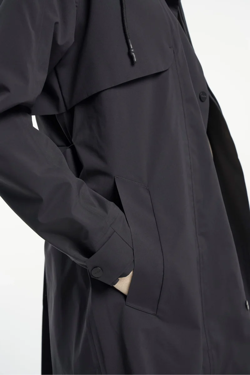 Tensons Trench Nouveau blandar en modern, enkel och diskret design med en klassisk silhuett, charmen av en trenchcoats bredare kavajslag, stormklaff och fickor, halvbälte vid ärmsluten med knappar etc. När det gäller funktionell kvalitet ger Tensons egenutvecklade MPC Extreme-teknik (WP 10 000 mm / MP 10 000 g/m2/24 h) med tejpade sömmar en kombination av extremt effektiv vattentäthet och exceptionell andningsförmåga för att du ska känna dig bekväm oavsett väder.
