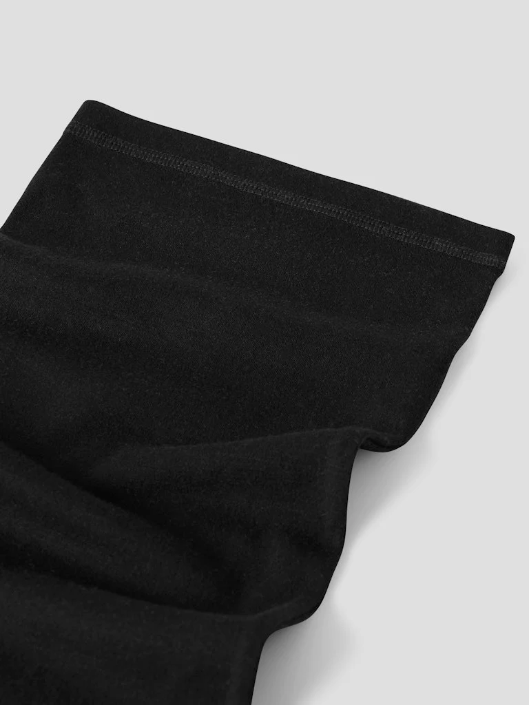 Svart buff, tubescarf perfekt att ha vid aktivitet i kallare väder. Värmer halsen, dra upp över näsan vid skidåkning eller dra upp över håret och använd som mössa eller vik den till ett pannband.