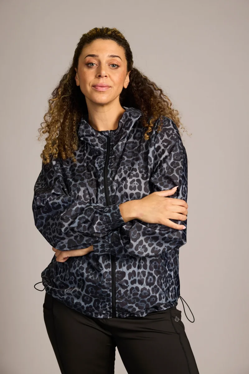 Tunn vind jacka med luva och långa ärmar, dragkedja så du både kan bära den öppen och stängd. Det är dragsko på varsin sida på slutet av jackan så du kan dra åt den.