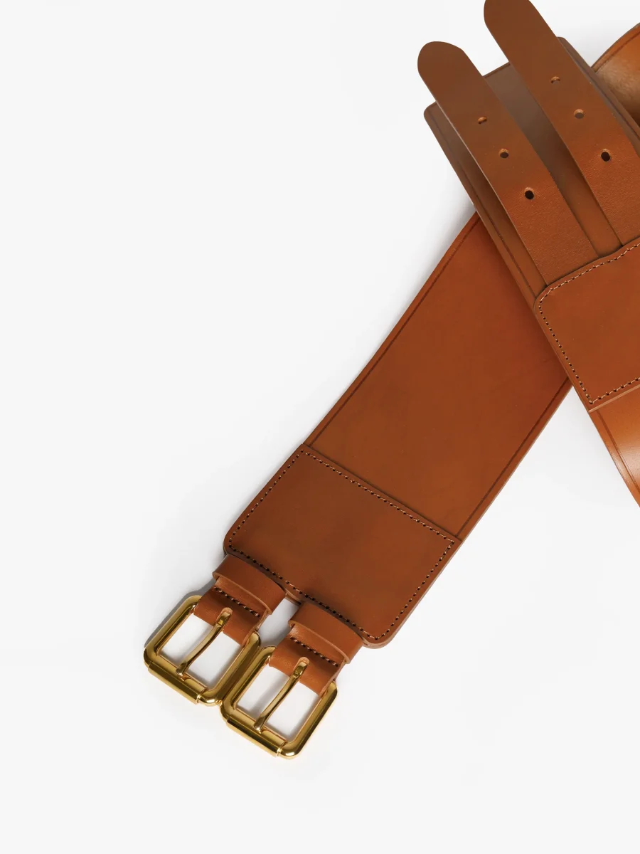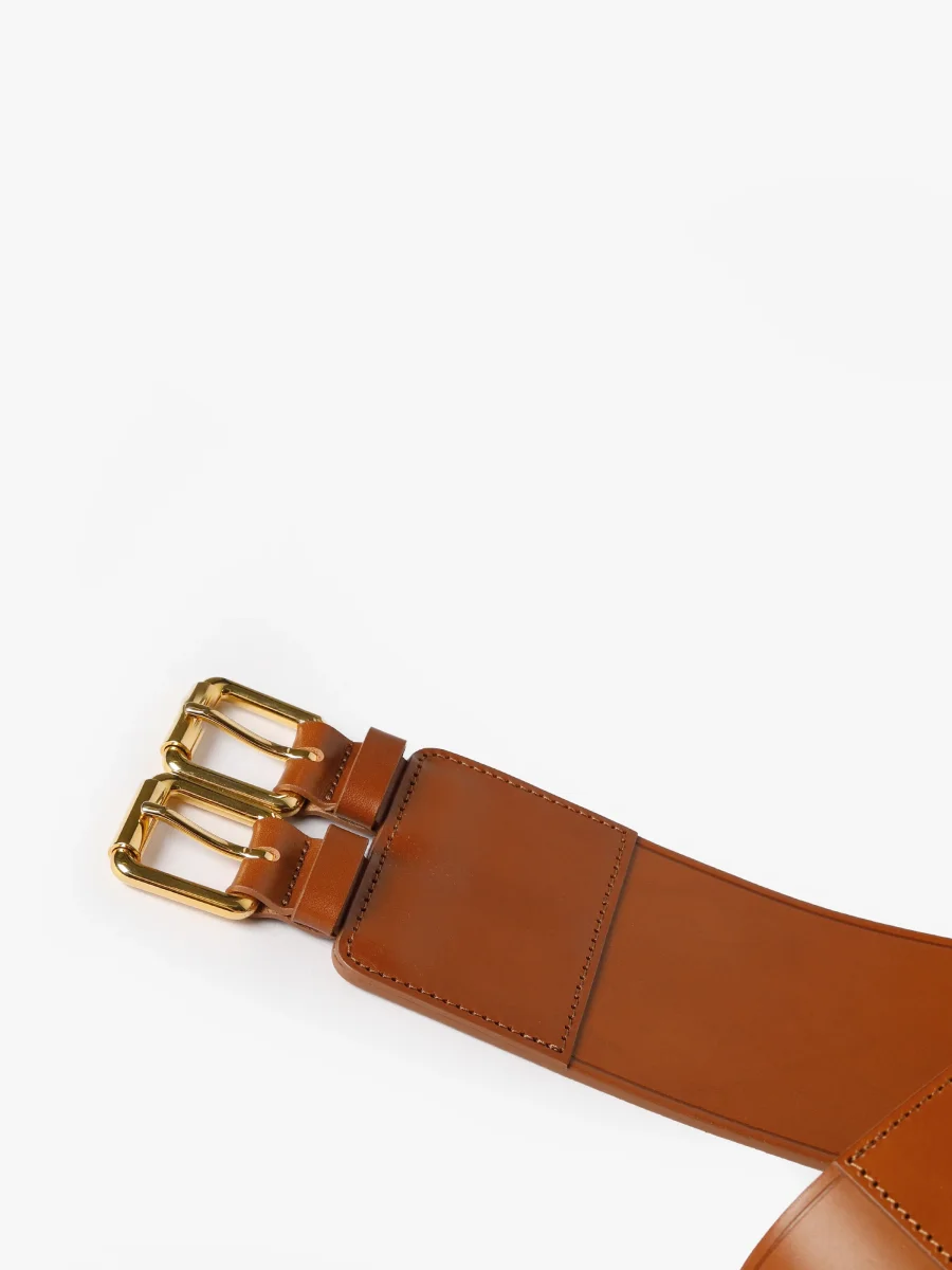 Brett bälte med dubbelt guldfärgad nickelfritt spänne. Bär med en klänning eller blus för en iögonfallande detalj till din look.