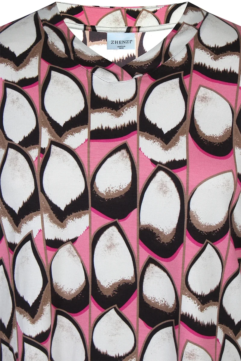 Skön vardagstopp med v-ringad hals och 3/4 dels långa ärmar, det är en lätt A-formad modell.