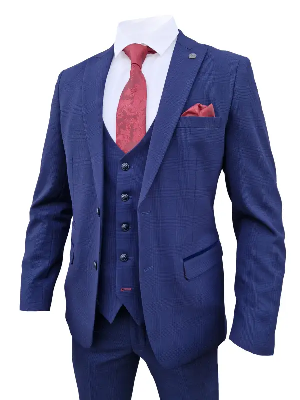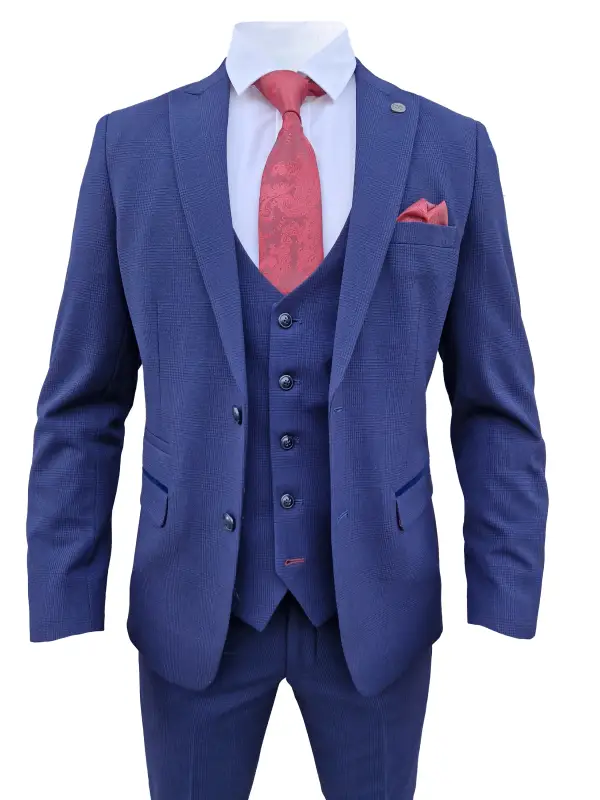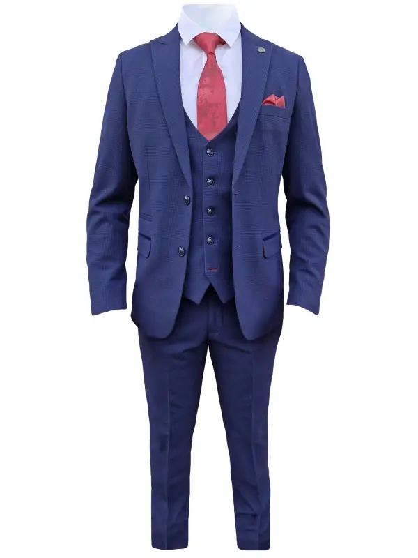 Vårt 3-delade mörkblåa herrkostym i rutmönster – Bromley Navy suit