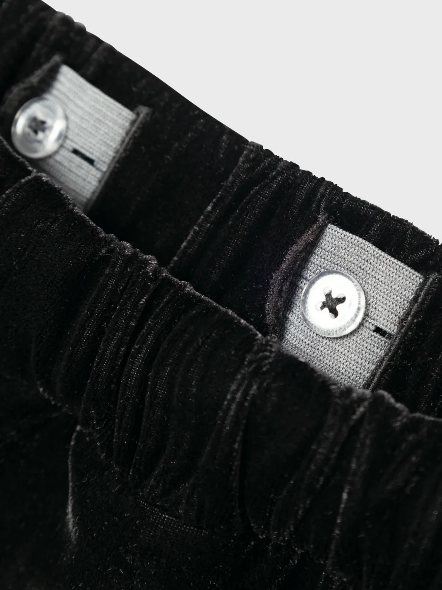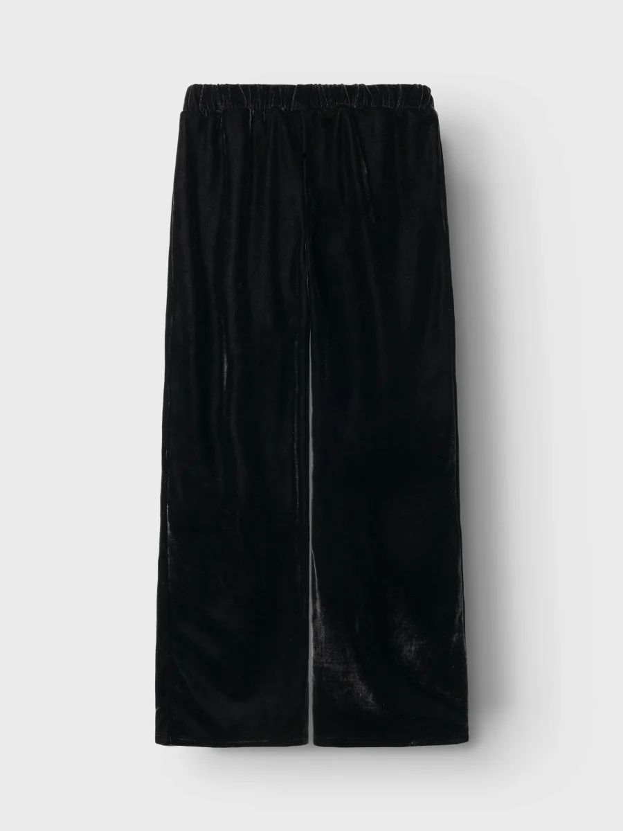 Snygga svart mysiga byxor som förgyller dagen med en skön känsla. Velour är ett mjukt och glänsande tyg med fibrer som följer handens drag för en fin effekt.
