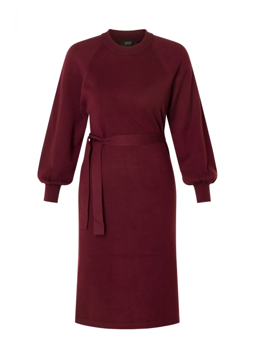 En skön stickad klänning med rundad hals och långa ärmar, det ingår ett bälte som du kan markera midjan med, styla den denna klänning med ett par höga stövlar och strumpbyxor.
