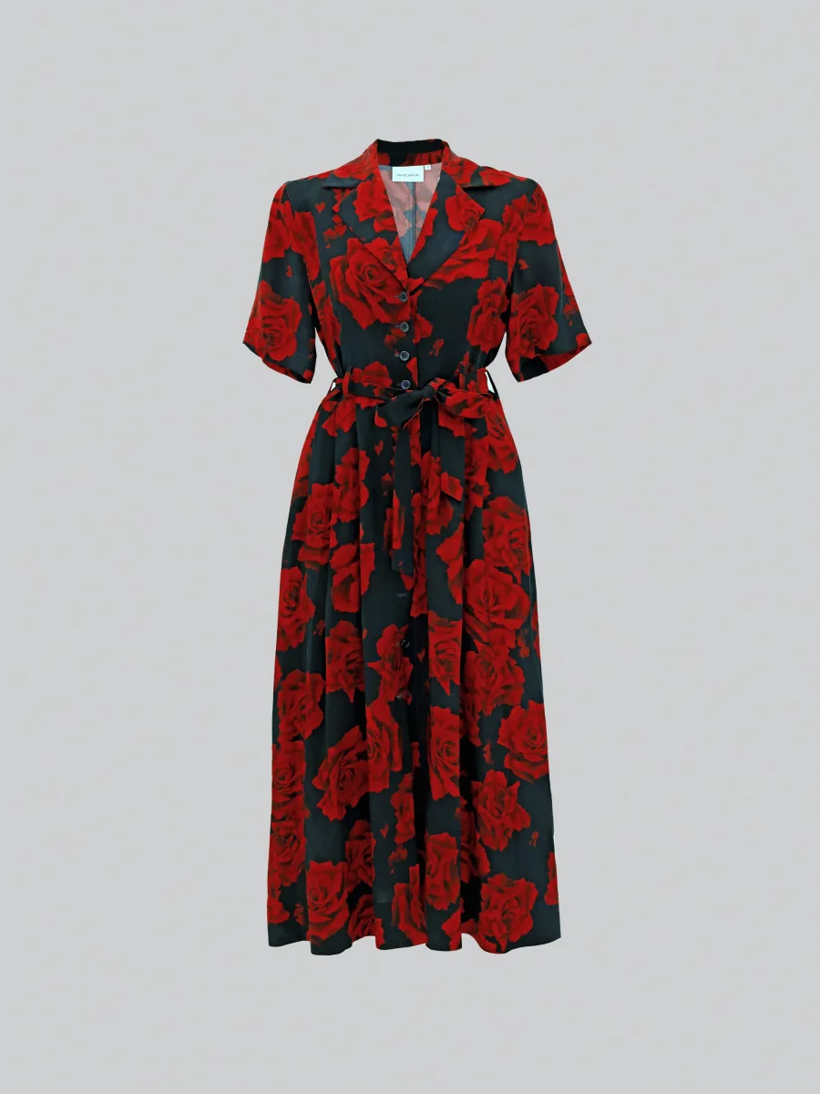 Vadlång skjortklänning med krag och två sidfickor. Klänningen har knäppning framtill och ett avtagbart skärp. Tillverkad av högkvalitativt italienskt tyg.